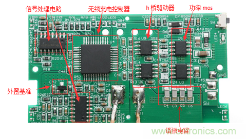 這種SoC方案下,PCB上只有一顆大芯片,和兩個MOS管,相當簡潔。SOC內(nèi)部集成了無線充電驅動,H橋驅動器,運放,內(nèi)置溫度保護功能等,一顆芯片實現(xiàn)所有功能,可有效控制成本和精簡生產(chǎn)流程。