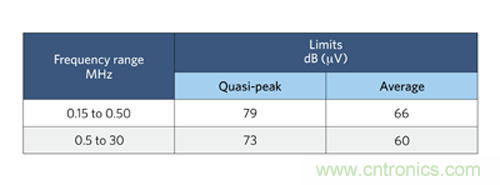 圖 1:CISPR 22 標準 B 類傳導 EMI 規(guī)范。