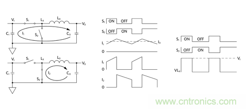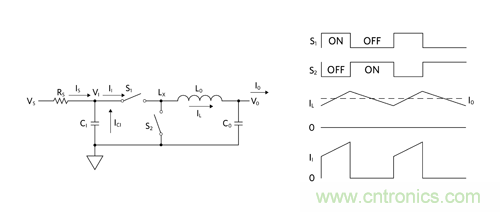 圖 5:Buck 調(diào)節(jié)器原理簡圖及其工作波形傳導 EMI。