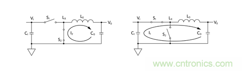 最大程度減小高 di/dt 電流環(huán)路:將 LO、CO 和 S2 正確布置在一起,最大程度減小 I2 電流環(huán)路。然后,使這一組元件靠近 S1 和 C1,最大程度減小 I1 電流環(huán)路。使用 buck 調(diào)節(jié)器 IC(即集成功率開關(guān) S1 和 S2 的 buck 控制器)時,選擇具有好的引腳排列從而支持這種最小化的 IC 非常重要。相同道理也適用于使用電源模塊的情況。