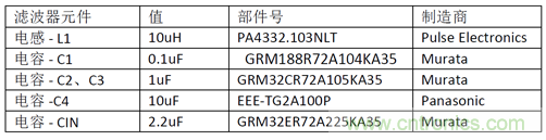 我們在設計中考慮濾波器的有效阻抗比 buck 轉(zhuǎn)換器的輸入阻抗小 10dB,大約等于輸入阻抗的三分之一。在 MAXM17575 的例子中,要求 Zo < RIN/3 = 7.6/3 = 2.5?,適用于 MAXM17575 電路穿越頻率 (45kHz)以下的所有頻率。