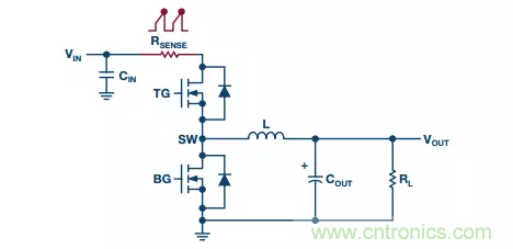 圖4. 帶低端RSENSE的降壓轉(zhuǎn)換器