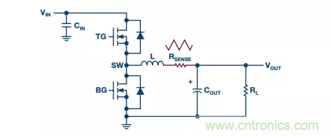圖3. 帶高端RSENSE的降壓轉(zhuǎn)換器