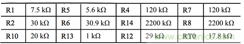 表1. 圖5所示電路的電阻值