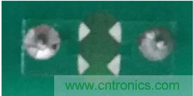 另一種辦法是在PCB設(shè)計(jì)時(shí),在共模電感兩端加入放電齒,使得電感通過兩放電尖端放電,避免通過其他路徑放電,從而使得對(duì)周圍和后級(jí)器件的影響減到最小。如圖3是ZLG致遠(yuǎn)電子型號(hào)為PA1HBxOD-10W的電力電源模塊PCB在共模電感處加入的放電齒的實(shí)物圖。