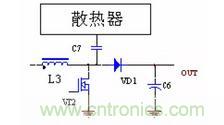 圖中C2 是二極管VD1 和VD2 與散熱器之間的耦合電容,容量一般在幾十PF,C3 是增加的電容,C3 要遠(yuǎn)大于C2,DC/DC 整流管、續(xù)流管上的電壓峰值經(jīng)過(guò)C2 與C3 的分壓,幅度大大降低,就可以大大減小向外的輻射。