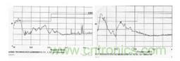 下面圖 9 是采取在PFC 開(kāi)關(guān)管散熱器對(duì)PFC 輸出地加電容與不加電容輻射強(qiáng)度的對(duì)比。