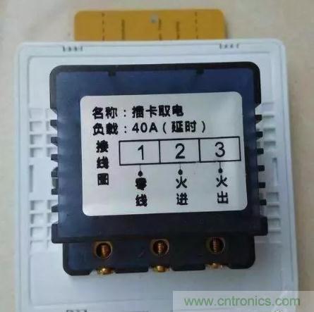 注意:普通面板開(kāi)關(guān)里面一般只有兩根線:火線進(jìn)和火線出,而插卡控制開(kāi)關(guān)一般三根線:火線進(jìn),火線出,零線。