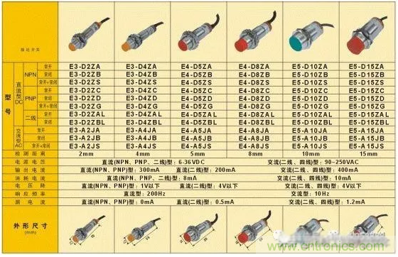 交流接近開關(guān)優(yōu)選AC 220V和AC 36V;直流接近開關(guān)優(yōu)選DC 12V和DC 24V。一般情況下,接近開關(guān)的電壓選擇范圍很廣。如下圖所示: