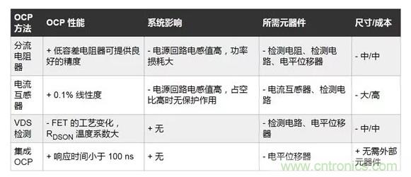表:GaN HEMT 功率級的 OCP 方法選擇匯總。對于不熟悉該技術(shù)的設(shè)計人員來說,選擇集成 OCP 的功率級是最簡單的解決方案。(圖片來源:Texas Instruments)