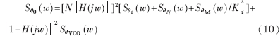 為壓控振蕩器附加的相位噪聲譜。由于鎖相環(huán)閉環(huán)傳輸函數(shù)H(jw)具有低通性質,即: