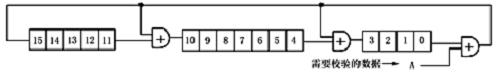 本文采用的CRC-CCITT,能檢測出所有的雙錯、奇數(shù)位錯、突發(fā)長度不大于16的突發(fā)錯以及99.997%的突發(fā)長度為17的突發(fā)錯和99.998%的突發(fā)長度大于或等于18的突發(fā)錯。CRC校驗碼的數(shù)學原理本文在此不作介紹。本文在這里說明怎樣實現(xiàn)CRC校驗。CRC校驗碼的運算可以用移位寄存器和半加器來實現(xiàn)。如附圖8所示。