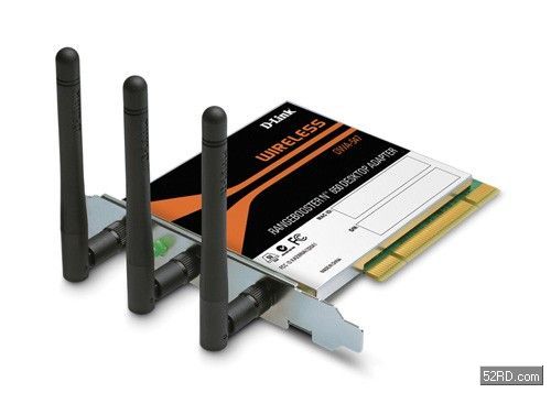 D-Link友訊的Pren/11n型無線網(wǎng)路卡:RangeBoosterN650DesktopAdapterDWA-547,圖中可看出三個(gè)直豎天線。