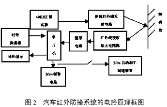 汽車紅外防撞系統(tǒng)的電路原理框圖如圖2所示。