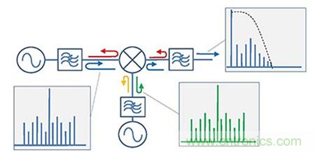 互調(diào)抑制一直是衡量混頻器設計的目標之一?;诋斍鞍雽w工業(yè)的發(fā)達,我們可以通過利用高動態(tài)范圍的場效應管成功實現(xiàn)了不同水平的互調(diào)抑制。然而,即使最好的混頻器也會在它的每個端口產(chǎn)生一些互調(diào)產(chǎn)物,并且這些互調(diào)產(chǎn)物會成為影響到周邊射頻鏈路中的因素。當傳統(tǒng)濾波器要濾除這些互調(diào)產(chǎn)物時,他們會被完全反射回到混頻器,并與基波信號重新合成而產(chǎn)生大量的假信號。這些假信號會因為可能落在所需的頻帶內(nèi)而通過濾波器輸出到中頻,進而限制了整個系統(tǒng)的動態(tài)范圍。