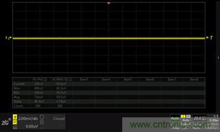 但是當垂直檔位越大,量化噪聲逐漸占主導(dǎo)地位,而模擬前端噪聲雖然會隨著放大器的增益變化產(chǎn)生微小的改變,但是仍然在2mV以下。