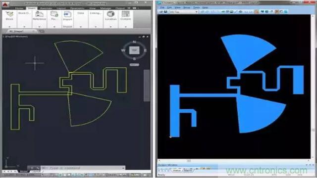 類似前面描述的一些嚴(yán)重錯誤可能導(dǎo)致電路性能低下,甚至無法工作。為了盡量減少錯誤、簡化射頻設(shè)計任務(wù)以及提高生產(chǎn)率,PCB 設(shè)計工具可以針對復(fù)雜的銅皮形狀提供導(dǎo)入控制。例如,您可以通過控制DXF 文件中的層,并將其重新映射至CAD 電氣系統(tǒng)層,來創(chuàng)建可用的銅皮形狀(圖1)。
