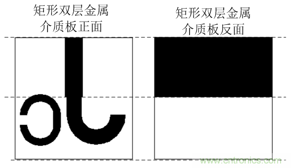 由上節(jié)分析可知,C形環(huán)探測(cè)信號(hào)的耦合度受制于耦合間距。在間距達(dá)到1mm的情況下,在10GHz才達(dá)到-19.45dB。為了增強(qiáng)耦合度,本節(jié)在C形環(huán)旁邊添加了與它相反的C形環(huán),達(dá)到電磁耦合互補(bǔ),增加耦合度的作用。其結(jié)構(gòu)示意圖如下圖3所示。