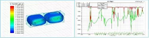 通過以上電場分布圖可以觀察到,單腔雙模,單腔三??梢宰杂蛇x擇。在高次模出現(xiàn)的頻率點(diǎn)上,通過選擇介電常數(shù),與控制諧振腔尺寸,對高次模進(jìn)行優(yōu)化。盡量拉遠(yuǎn)高次模出現(xiàn)的頻率,減小對通帶的影響。