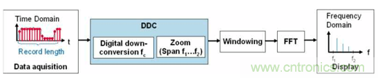 傳統(tǒng)的做法是,示波器把信號樣本采集下來,然后通過軟件算法來進行軟件運算,速度非常慢,我們的方式通過專用的硬件加速集成電路(ASIC),把fft 功能交給這個硬件電路來實現(xiàn),速度快到幾乎不影響原始波形的刷新速率。當(dāng)然這個ASI 是需要花大把銀子來研發(fā)的。核心對比用到了專用的DDC 電路。