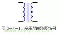 通常直流穩(wěn)壓電源使用電源變壓器來(lái)改變輸入到后級(jí)電路的電壓。電源變壓器由初級(jí)繞組、次級(jí)繞組和鐵芯組成。初級(jí)繞組用來(lái)輸入電源交流電壓,次級(jí)繞組輸出所需要的交流電壓。通俗的說(shuō),電源變壓器是一種電→磁→電轉(zhuǎn)換器件。即初級(jí)的交流電轉(zhuǎn)化成鐵芯的閉合交變磁場(chǎng),磁場(chǎng)的磁力線切割次級(jí)線圈產(chǎn)生交變電動(dòng)勢(shì)。次級(jí)接上負(fù)載時(shí),電路閉合,次級(jí)電路有交變電流通過(guò)。變壓器的電路圖符號(hào)見(jiàn)圖2-3-1。