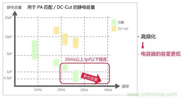 伴隨著基站PA用GaN高頻大電力晶體管的普及,與傳統(tǒng)的Si LDMOS晶體管相比,大電力化、高溫動作對應(yīng)、高速(高頻)工作對應(yīng)等PA性能顯著提升。晶體管性能提升的同時,這也意味著周邊元件需要具有更加嚴酷的使用環(huán)境耐性。
