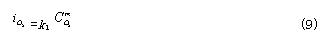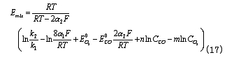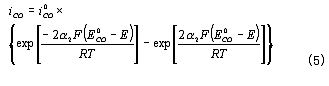 為CO的交換電流密度;a為CO氧化反應(yīng)的電荷傳遞系數(shù)。——— 在平衡條件下,上述兩反應(yīng)的電流密度相等,所以有
