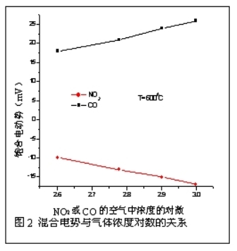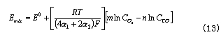 此式給出了CO濃度和混合電勢的線性關(guān)系。