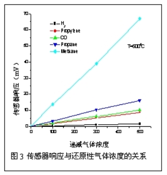混合電勢傳感器受電極材料、電極形貌以及固態(tài)電解質(zhì)類型的影響。許多基于Pt、Au電極和YSZ電解質(zhì)的混合電勢傳感器在高于400℃的溫度下工作,但是Au電極在高溫下會迅速再結(jié)晶長大而失去催化活性,這使得傳感器在高溫工作時沒有長期穩(wěn)定性。電極的長期熱、化學(xué)穩(wěn)定性和大規(guī)模制備可重復(fù)的傳感器結(jié)構(gòu)是混合電勢氣體傳感器的主要障礙,用耐高溫并具有良好活性的氧化物電極材料取代金屬電極為改進傳感器選擇性和長期穩(wěn)定性提供了前景。