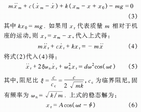 式中,ω為振動的角頻率,d為振動的幅值.由牛頓定律,該振動系統(tǒng)的微分方程可寫為: