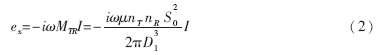 式中,nT和nR分別為發(fā)射線圈和接收線圈的匝數(shù);S0為線圈的橫截面積;I為發(fā)射線圈中的電流;μ為介質磁導率; D1為T、R兩線圈之間的距離;MTR為兩線圈互感系數(shù)。所以由此而產生的感應電動勢為: