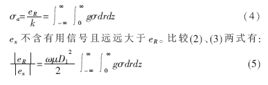 式中,ω為發(fā)射電流的頻率。由式(2)可以看出,ex是一個落后于發(fā)射電流π/2且與探頭周圍介質導電率無關的電勢信號。在系統(tǒng)的接收信號中,它表現(xiàn)為一個幅值較大的背景噪音。
