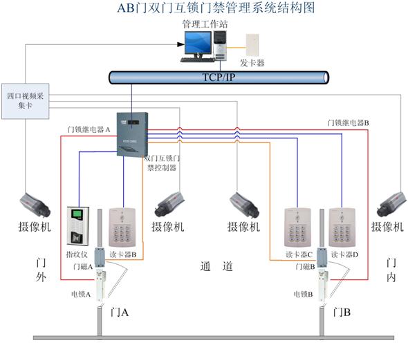 智能卡AB門雙門互鎖門禁是智能門禁系統(tǒng)的一個非常巧妙的應(yīng)用,在一個需要嚴(yán)格控制人員進(jìn)出區(qū)域外的通道上安裝雙門互鎖門禁,當(dāng)人員通行時,經(jīng)過第一道門之后必須關(guān)好該門才能開啟第二道門,這樣有效的隔離通道內(nèi)外兩側(cè)的空間,防止了犯罪分子尾隨進(jìn)入安全區(qū)域等情況的發(fā)生。該雙門互鎖系統(tǒng)還可配合閉路監(jiān)控設(shè)備實現(xiàn)中心對刷卡人員的監(jiān)控,還可以安裝指紋儀實現(xiàn)更高級的指紋AB門雙門互鎖門禁。