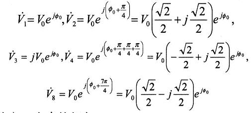 如果用Vo表示各發(fā)射極電壓的幅值,并取8路信號(hào)中的第1路信號(hào)的相位為參考值,則有: