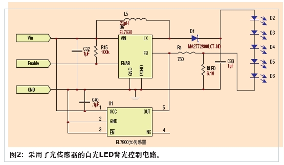 這些要求如何在一個(gè)實(shí)際的應(yīng)用中實(shí)現(xiàn)呢?讓我們看一看環(huán)境光傳感器是如何在一個(gè)自動(dòng)的白光LED背光控制電路中工作的,在汽車(chē)背光應(yīng)用中通??梢钥吹竭@種控制電路。