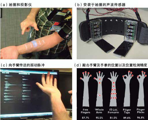 Harrison與美國微軟研究院(Microsoft Research)的研究人員開發(fā)出了以手及手臂表面作為觸摸面板的技術(shù)“Skinput”。“我們試制了一個可實際運行的系統(tǒng)”(Harrison)。只需用手指在手掌及手臂等的表面輕輕敲擊,即可操作游戲機、音樂播放器及手機等。