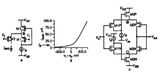 a.AB類差分輸入單元 b.DC傳輸特性 c.低功耗緩沖器
