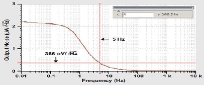 利用圖6所示原始電路,我們使用最初指定的一些噪聲值,可以通過方程式7再次估算出5Hz的噪聲。