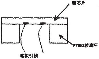 單一的硅片芯片只能作為一個(gè)檢測(cè)單元的一部分無法獨(dú)立完成信號(hào)的轉(zhuǎn)換,所以必須有特定的封裝使其具備壓力檢測(cè)的能力。將圖2中的硅片芯片與PYREX玻璃環(huán)靜電封接在一起。