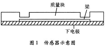 壓阻式加速度傳感器的彈性元件一般采用硅梁外加質(zhì)量塊,質(zhì)量塊由懸臂梁支撐,并在懸臂梁上制作電阻,連接成測量電橋。在慣性力作用下質(zhì)量塊上下運(yùn)動,懸臂梁上電阻的阻值隨應(yīng)力的作用而發(fā)生變化,引起測量電橋輸出電壓變化,以此實(shí)現(xiàn)對加速度的測量。