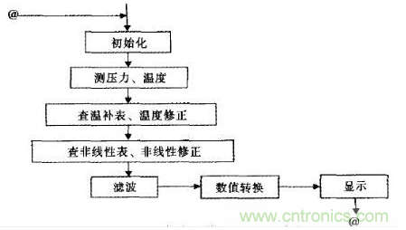 根據(jù)圖2的源程序流程圖可設(shè)計(jì):安裝好智能壓力傳感器一進(jìn)行標(biāo)定一將信號轉(zhuǎn)換成數(shù)字碼一存人E.PROM中一理想輸出。如圖2所示。
