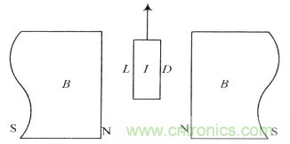 霍爾傳感器是利用霍爾效應(yīng)實(shí)現(xiàn)磁電轉(zhuǎn)換的一種傳感器。它具有靈敏度高,應(yīng)用廣泛的特點(diǎn)。其工作原理如圖2所示:一塊半導(dǎo)體薄片,其長度為L,寬度為B,厚度為D,置于磁感應(yīng)強(qiáng)度為B的磁場中,在相對的兩邊通以控制電流I,且磁場方向與電流方向正交,則在半導(dǎo)體的兩邊將產(chǎn)生一個(gè)與控制電流和磁感應(yīng)強(qiáng)度乘積成正比的電勢U,該電勢即為霍爾電壓,用UH表示,即UH=KHIB,其中KH為霍爾元件的靈敏度,半導(dǎo)體薄片就是霍爾元件。