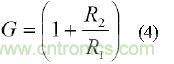 該儀表放大器的傳遞函數(shù)在形式上與經(jīng)典三運(yùn)放拓?fù)浣Y(jié)構(gòu)的 傳遞函數(shù)相同,其計(jì)算公式為