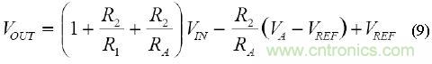 如果相對于原始等式中的VREF取VOUT和VA,則可得到相同的結(jié)果。 VA(MAX)~VREF也應(yīng)替換等式(7)中的VA(MAX)。