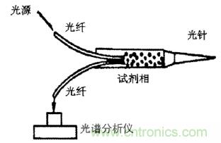 采用光傳感器測(cè)量 pH 值的原理,是利用透射光和發(fā)射光的強(qiáng)度隨波長(zhǎng)分布光哭進(jìn)行測(cè)定的,在纖維素膜盒中插入兩條光纖,然后將針頭插入血管或者組織中,試劑會(huì)和體液混合,吸收特定波長(zhǎng)的光,然后使用分析儀將測(cè)量這種變化,分析后即可得到組織或者血液的 pH 值。