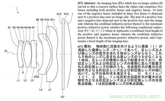 緊接著在2012年12月索尼曲面?zhèn)鞲衅鲗S苗R頭專利公布,針對1.4“及以下傳感器進行設計,結合索尼曲面CMOS傳感器,可以有效消除像場彎曲現(xiàn)象,改善邊緣畫質。