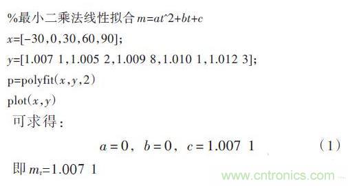 由于按照最小二乘法的基本步驟進(jìn)行擬合的計(jì)算量比較大,所以本文采用Matlab進(jìn)行數(shù)據(jù)處理,這樣不但可以減少?gòu)?fù)雜的計(jì)算過(guò)程,而且還可以保證較高的計(jì)算精度。