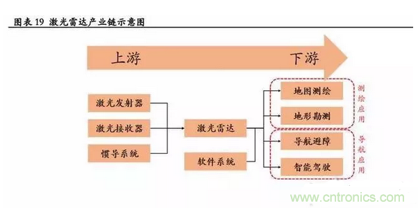 實(shí)際上,產(chǎn)業(yè)鏈的上游制造元件成本不高,不是構(gòu)成成本的主要因素;且因?yàn)榧す饫走_(dá)是下游測(cè)繪、導(dǎo)航等應(yīng)用的核心部件,目前產(chǎn)能稀缺導(dǎo)致供不應(yīng)求,呈現(xiàn)賣方市場(chǎng),對(duì)下游有很強(qiáng)的定價(jià)權(quán),因此該產(chǎn)業(yè)鏈主要附加值在于激光雷達(dá)部分。