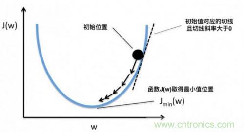根據(jù)導數(shù)判斷損失函數(shù)f在x0點上應當如何移動,才能使得f最快到達最小值的方法,我們稱為梯度下降。梯度也就是導數(shù),沿著負梯度的方向,按照梯度值控制移動步長,就能快速到達最小值。當然,實際上我們未必能找到最小點,特別是本身存在多個最小點時,但如果這個值本身也足夠小,我們也是可以接受的,如下圖所示: