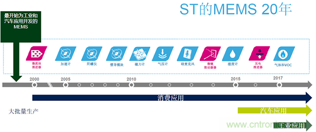 在過去的20年,消費(fèi)類應(yīng)用使不同類別的MEMS傳感器實(shí)現(xiàn)了從雛形,到大批量生產(chǎn)、直至大批量應(yīng)用的過程,這些傳感器包括加速計、陀螺儀、慣導(dǎo)模塊、磁力計、氣壓計、溫度計、氣體壓力計、以及最近幾年越來越多的環(huán)境類傳感器。
